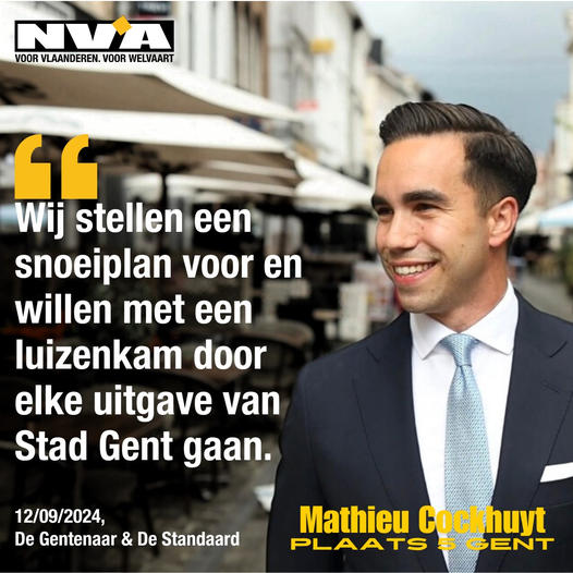 Gentenaars die een ander beleid willen, hebben maar één keuze: een stem voor de N-VA. Elke andere stem leidt naar meer van hetzelfde. Stem Mathieu in de gemeenteraad.